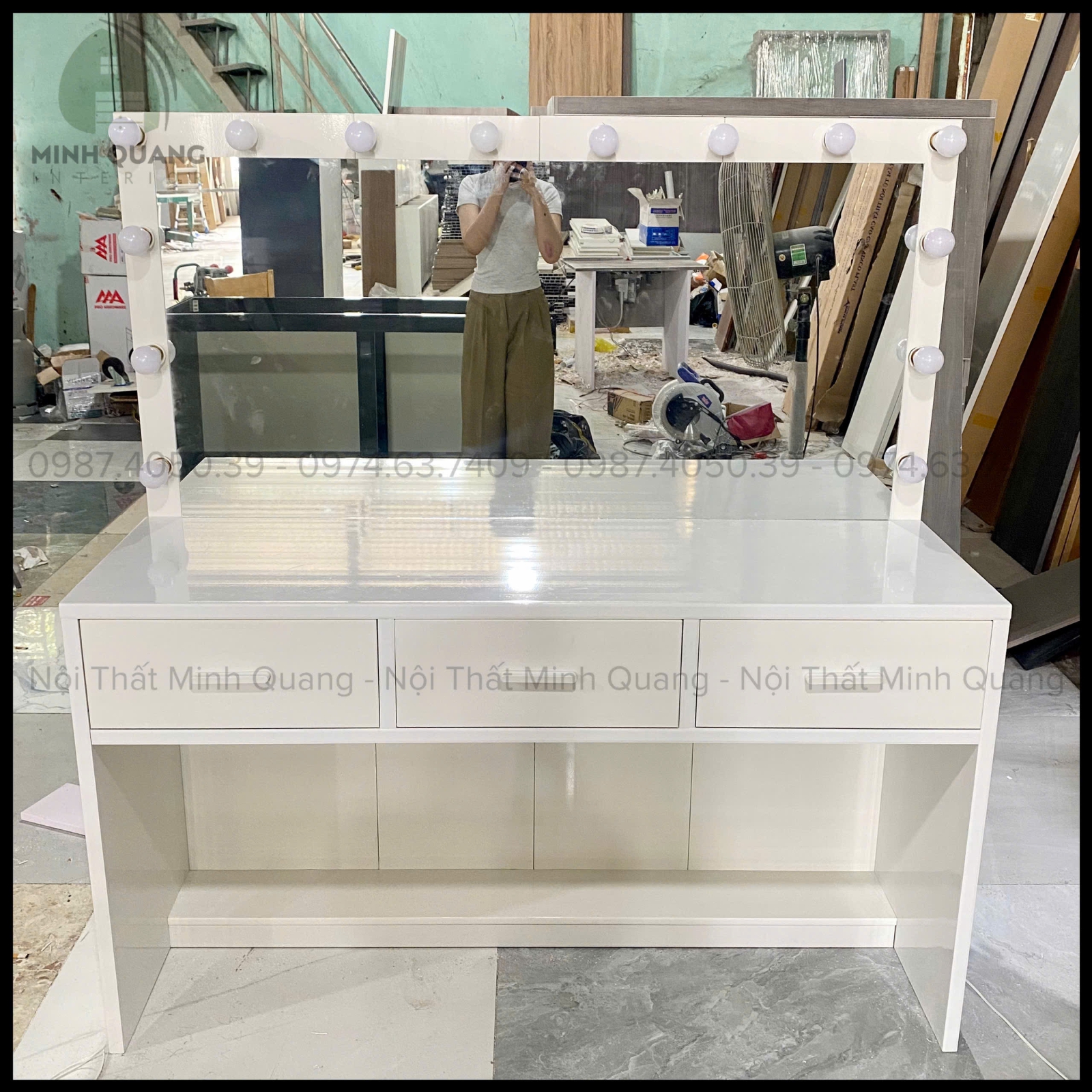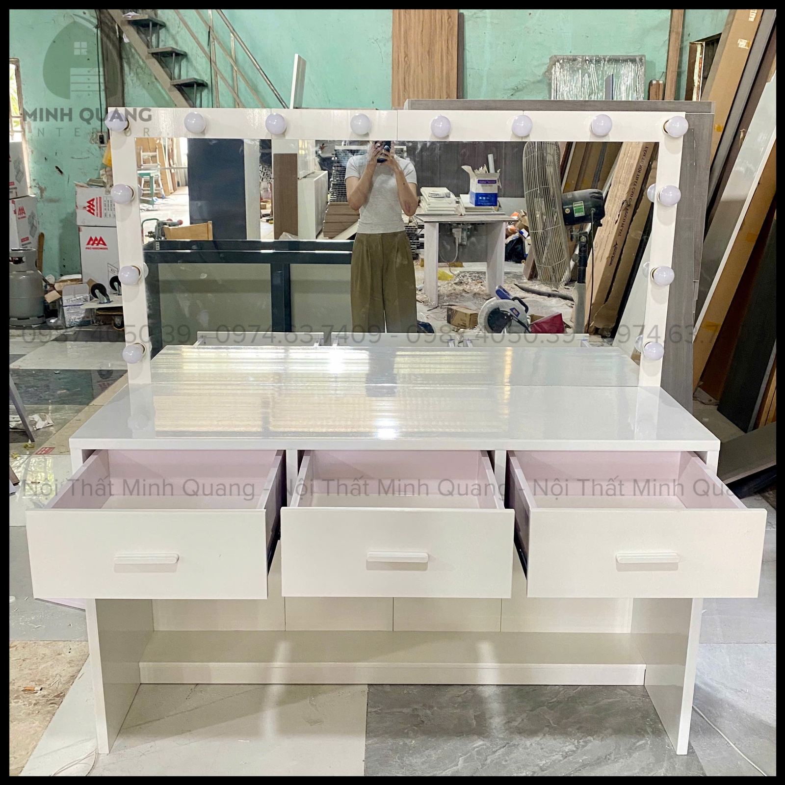 Tất cả sản phẩm tại Nội Thất Minh Quang đều được sản xuất trực tiếp tại xưởng, không qua trung gian. Nhờ đó, khách hàng vừa yên tâm về chất lượng, vừa tiết kiệm được chi phí. Ngoài ra, chúng tôi còn hỗ trợ thiết kế theo yêu cầu để tạo nên bộ bàn trang điểm phù hợp nhất với phong cách riêng của bạn.