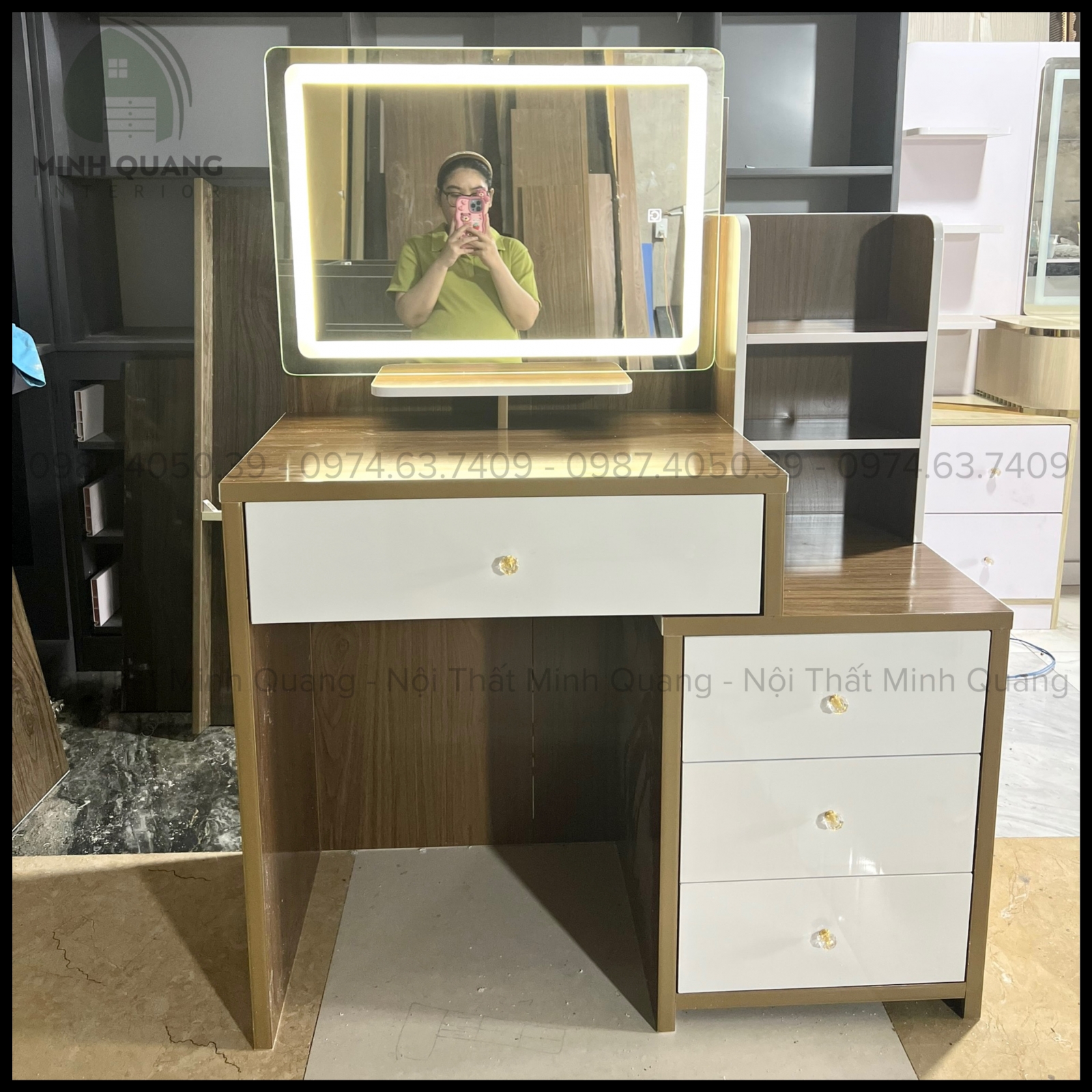 Tất cả sản phẩm tại Nội Thất Minh Quang đều được sản xuất trực tiếp tại xưởng, không qua trung gian. Nhờ đó, khách hàng vừa yên tâm về chất lượng, vừa tiết kiệm được chi phí. Ngoài ra, chúng tôi còn hỗ trợ thiết kế theo yêu cầu để tạo nên bộ bàn trang điểm phù hợp nhất với phong cách riêng của bạn.