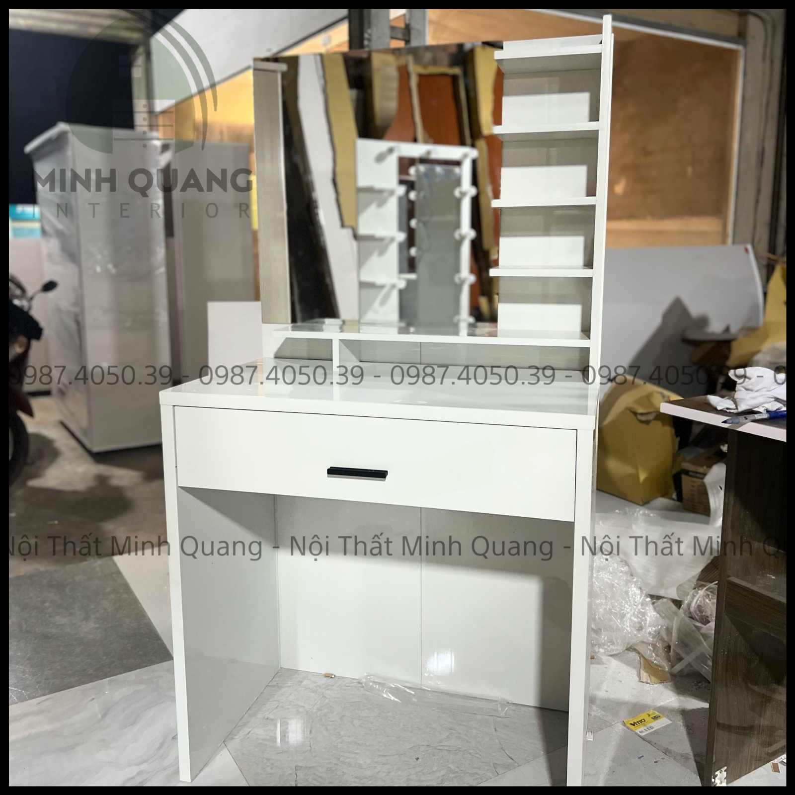 Tất cả sản phẩm tại Nội Thất Minh Quang đều được sản xuất trực tiếp tại xưởng, không qua trung gian. Nhờ đó, khách hàng vừa yên tâm về chất lượng, vừa tiết kiệm được chi phí. Ngoài ra, chúng tôi còn hỗ trợ thiết kế theo yêu cầu để tạo nên bộ bàn trang điểm phù hợp nhất với phong cách riêng của bạn.