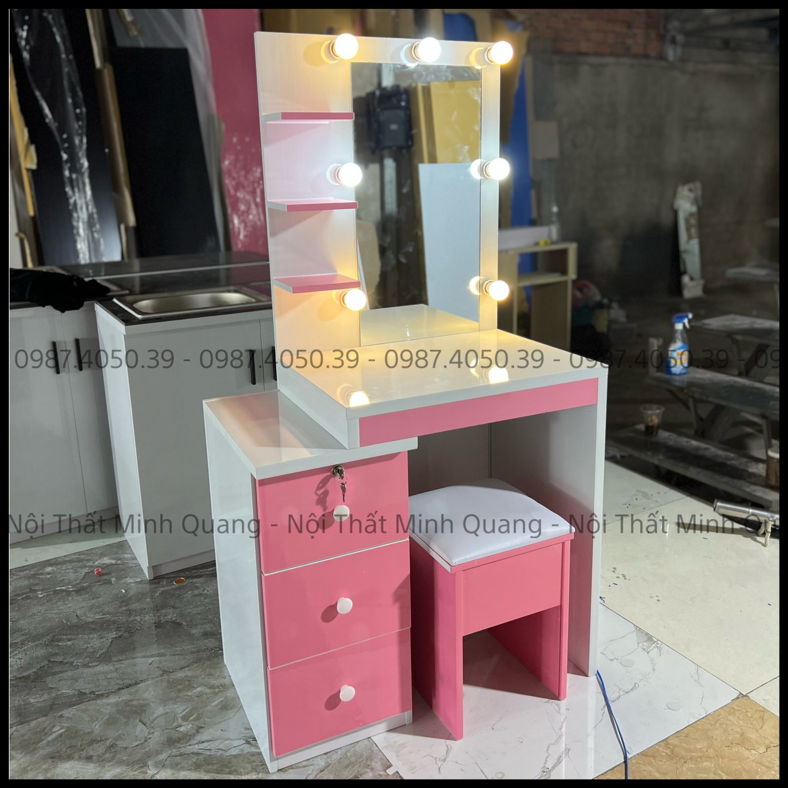 Tất cả sản phẩm tại Nội Thất Minh Quang đều được sản xuất trực tiếp tại xưởng, không qua trung gian. Nhờ đó, khách hàng vừa yên tâm về chất lượng, vừa tiết kiệm được chi phí. Ngoài ra, chúng tôi còn hỗ trợ thiết kế theo yêu cầu để tạo nên bộ bàn trang điểm phù hợp nhất với phong cách riêng của bạn.
