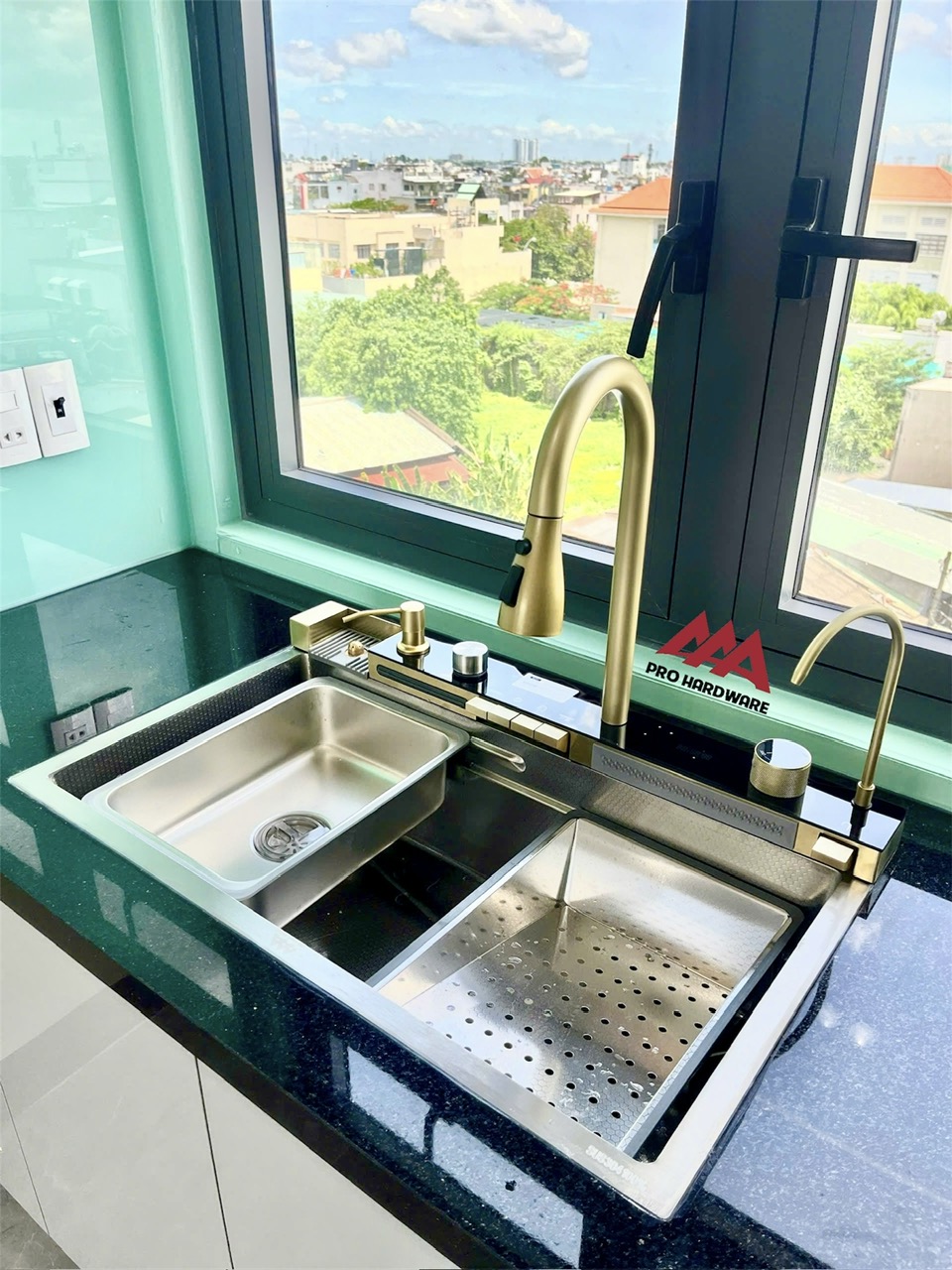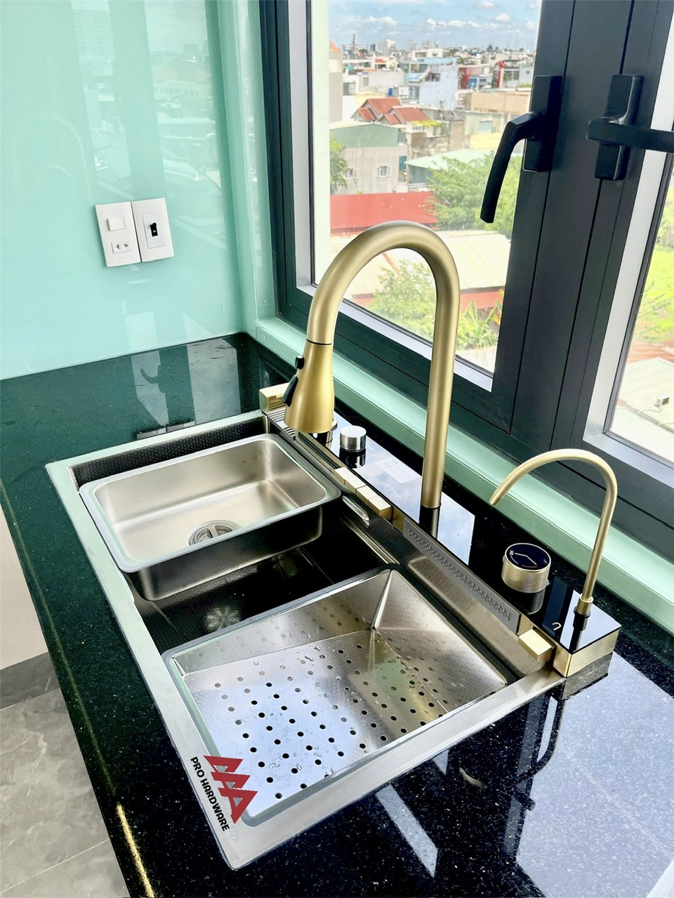 Bạn đang tìm kiếm một mẫu bồn rửa chén inox cao cấp, tích hợp nhiều tính năng thông minh, bền bỉ và tiện lợi cho không gian bếp hiện đại?