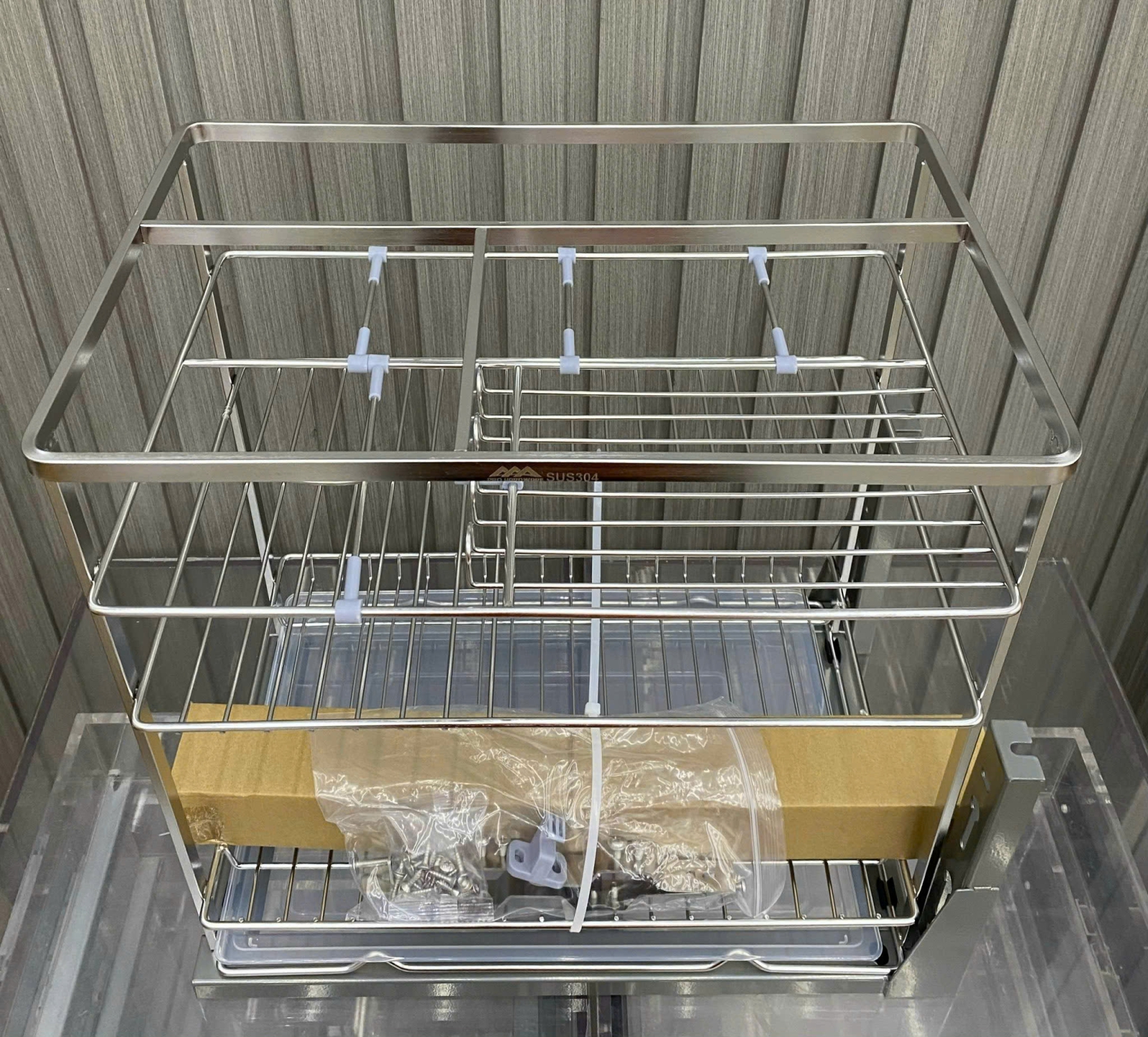 Inox 304 là vật liệu được ưa chuộng trong ngành phụ kiện bếp nhờ độ bền cao, chịu lực tốt và không bị oxy hóa. Bề mặt inox trơn nhẵn, ít bám bẩn, dễ lau chùi, giúp kệ luôn sạch sẽ và sáng bóng trong suốt quá trình sử dụng.