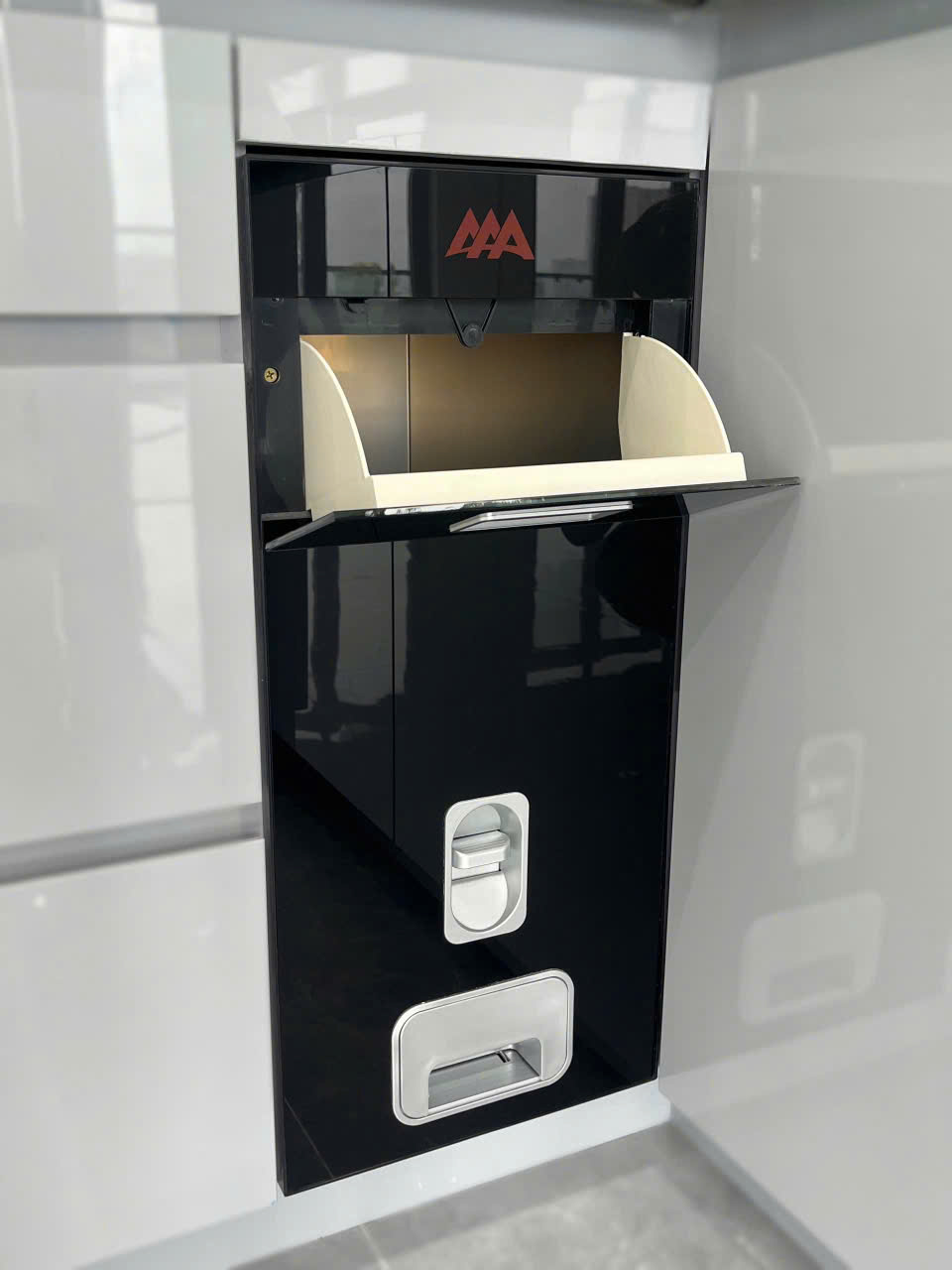 Cơ chế lấy gạo thông minh cho phép đong gạo chính xác, hạn chế rơi vãi trong quá trình sử dụng, đồng thời giúp gạo luôn khô ráo và hạn chế côn trùng xâm nhập. Hệ ray trượt vận hành nhẹ nhàng, thao tác kéo – đóng êm ái, phù hợp với nhiều kiểu tủ bếp hiện nay.