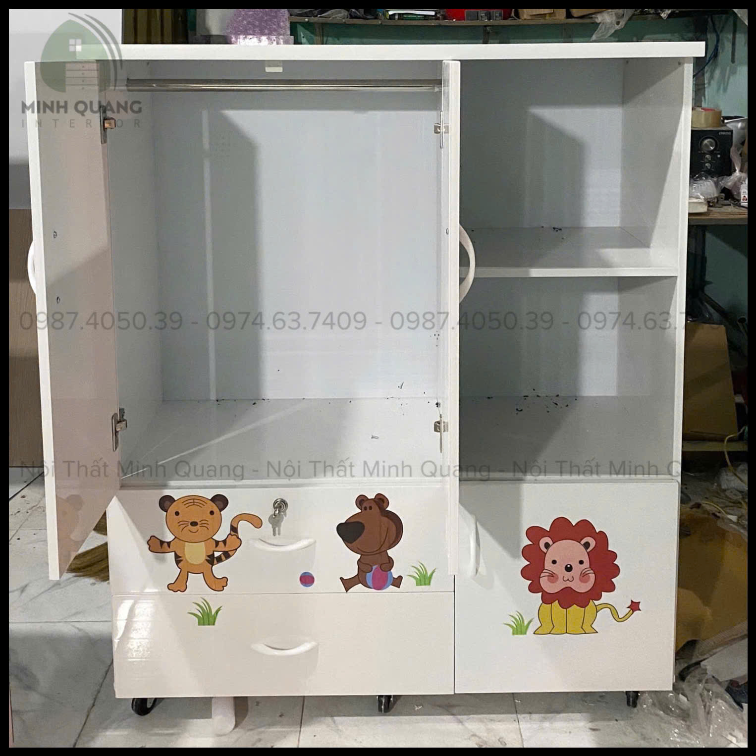 – Chia ngăn khoa học: ngăn treo, ngăn xếp đồ, ngăn để đồ chơi