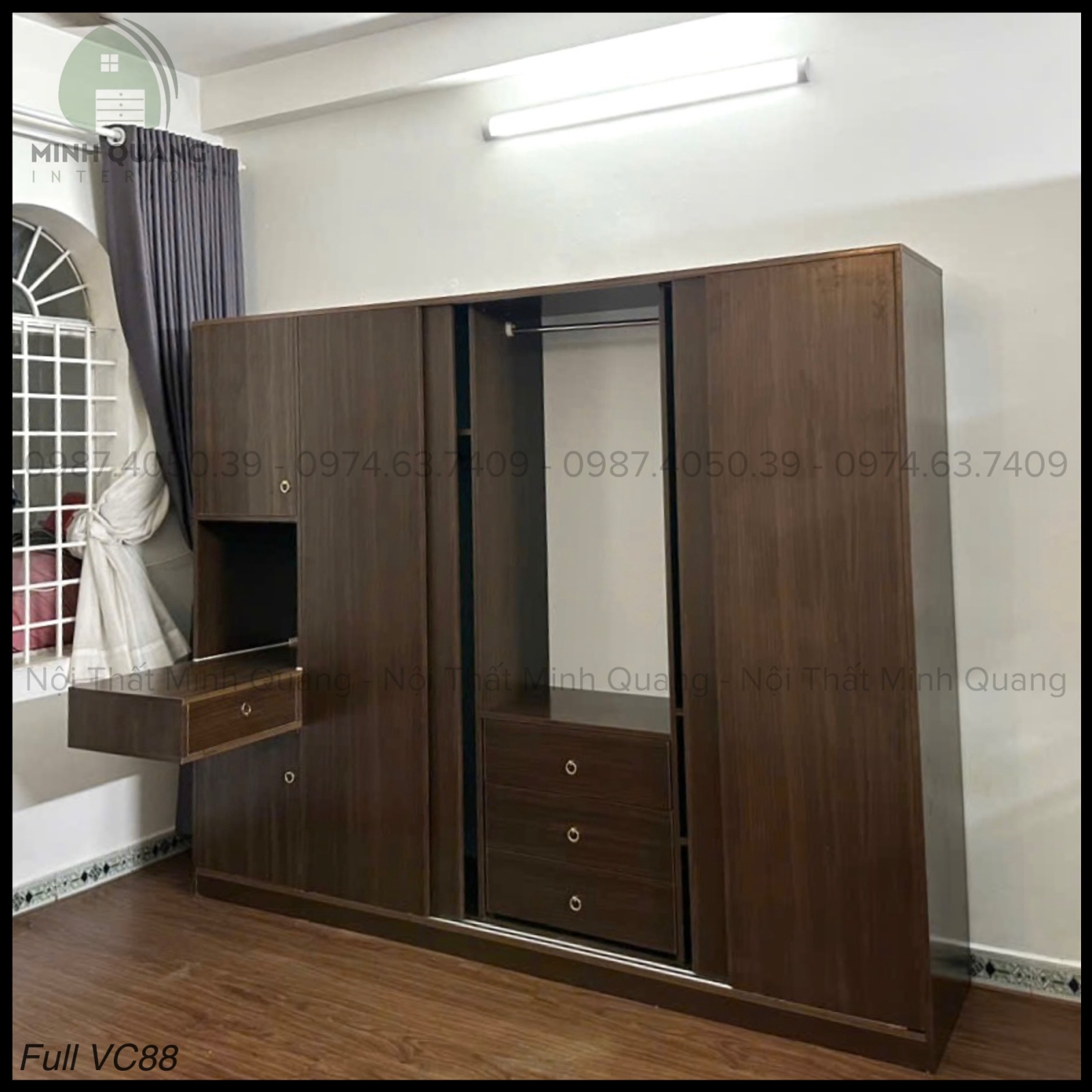 • Thiết kế linh hoạt theo yêu cầu: từ 1 đến 5 cánh, có thể thêm hộc kéo, gương soi, kệ trang trí
