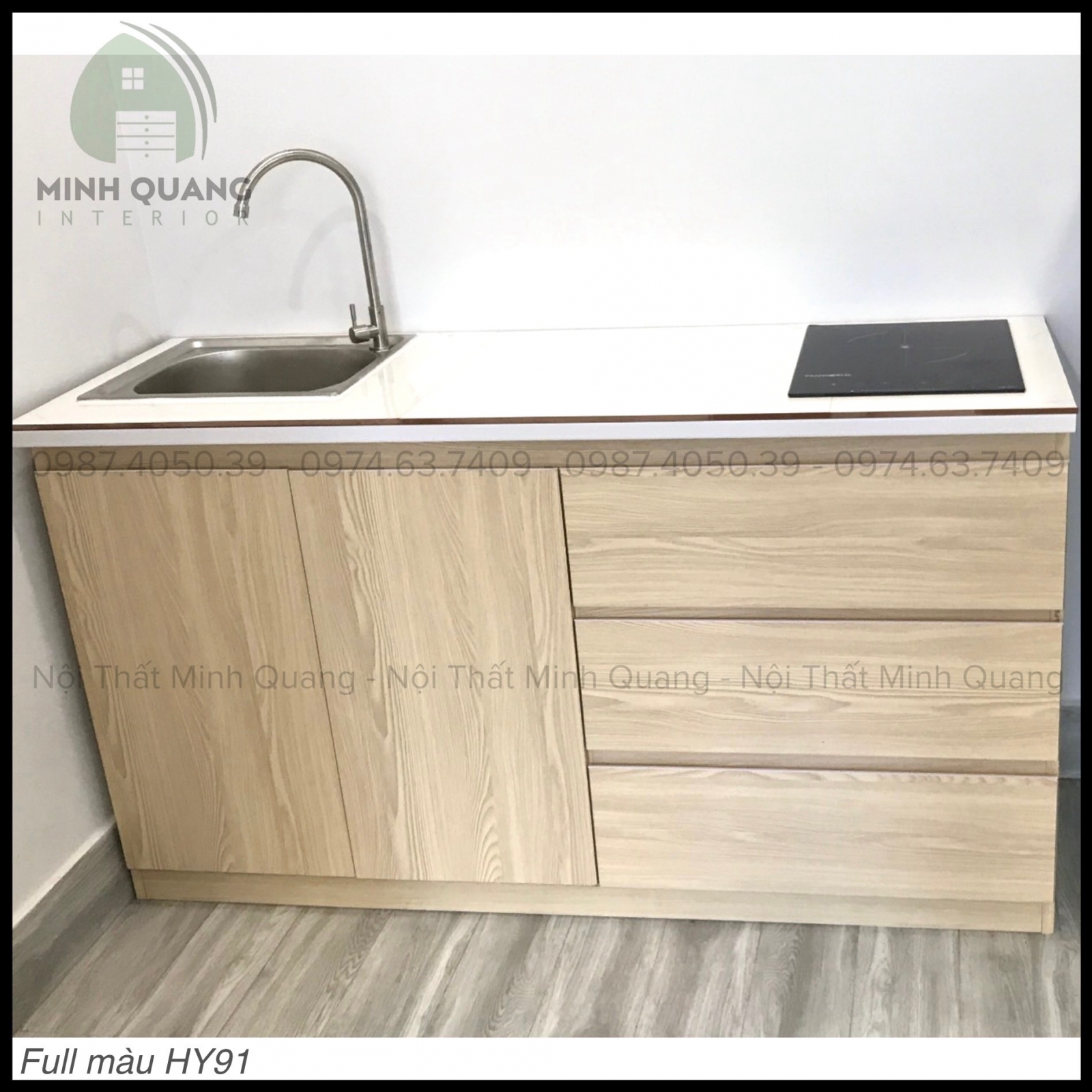 • Thiết kế thông minh: tủ trên, tủ dưới, kệ lò vi sóng, bồn rửa, bếp điện từ…