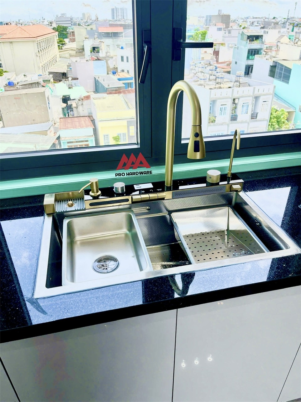Bạn đang tìm kiếm một mẫu bồn rửa chén inox cao cấp, tích hợp nhiều tính năng thông minh, bền bỉ và tiện lợi cho không gian bếp hiện đại?