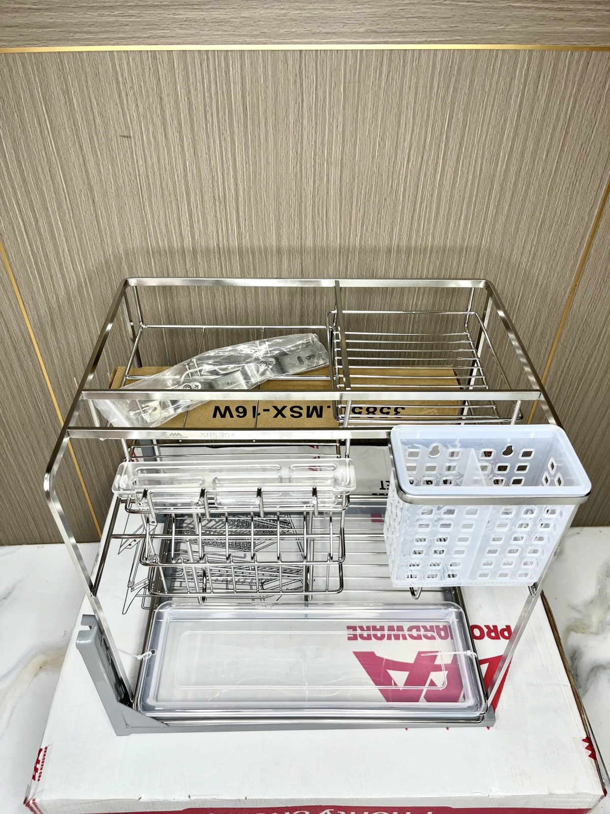 Kết cấu kệ chắc chắn, các chi tiết được hoàn thiện tỉ mỉ giúp hạn chế rung lắc trong quá trình sử dụng. Việc đóng mở, lấy và cất đồ diễn ra nhẹ nhàng, không gây tiếng ồn khó chịu, phù hợp với không gian sinh hoạt gia đình.